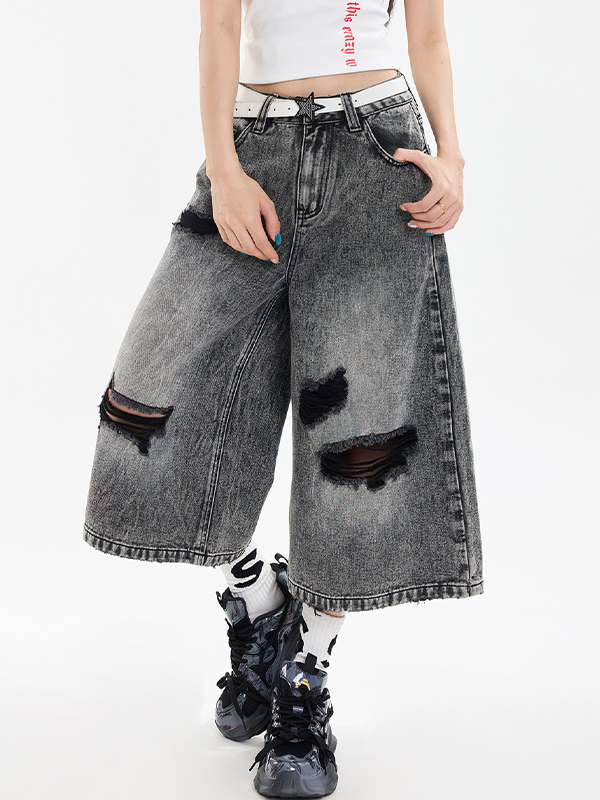 Weite Taille, geknöpfte Slim Fit Schlagjeans