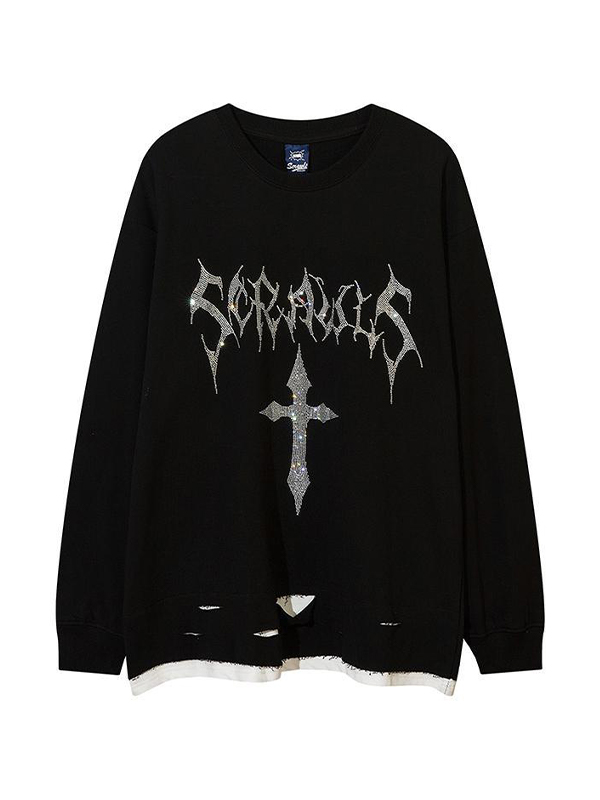 Sweatshirt mit Strasssteinen und Kreuzlöchern