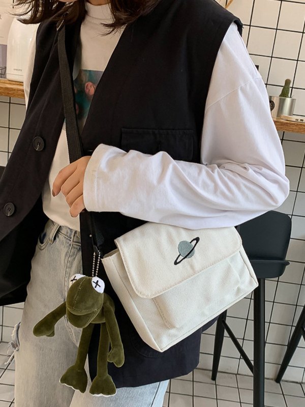 Umhängetasche aus Canvas mit Anhänger im Design Planet
