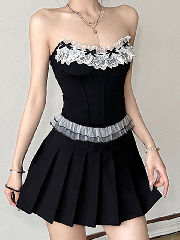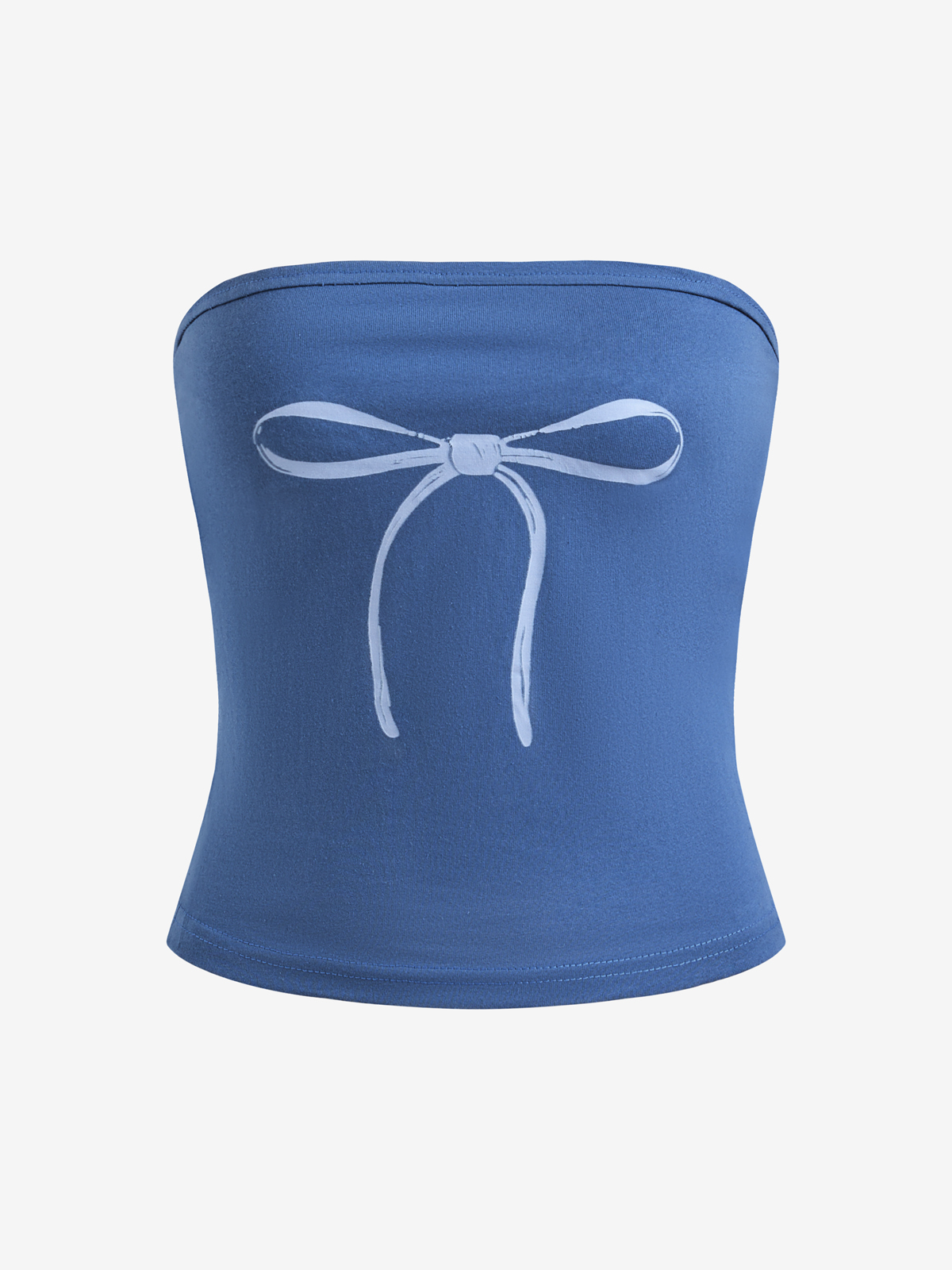 Bandeau-Top mit Spitzeneinfädelung und Schleife