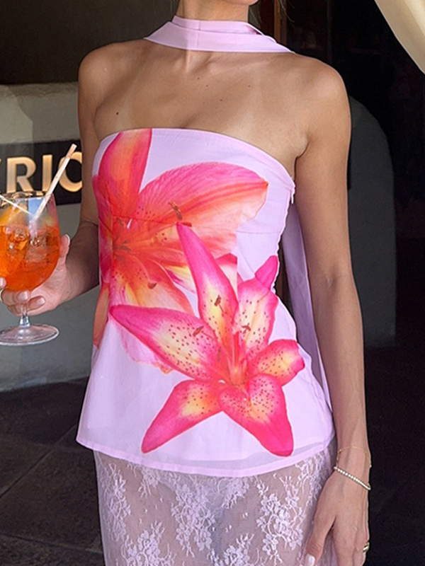 Trägerloses Tanktop mit Blumenmuster und seitlicher Schnürung