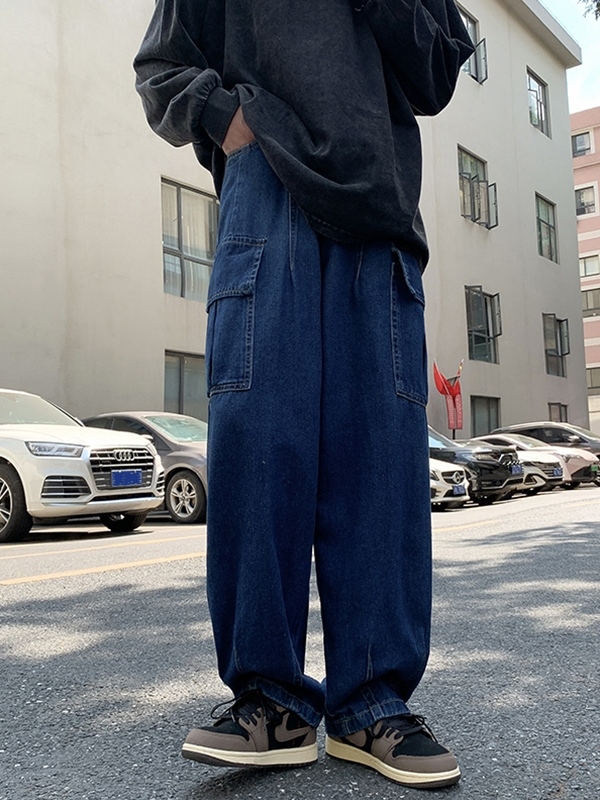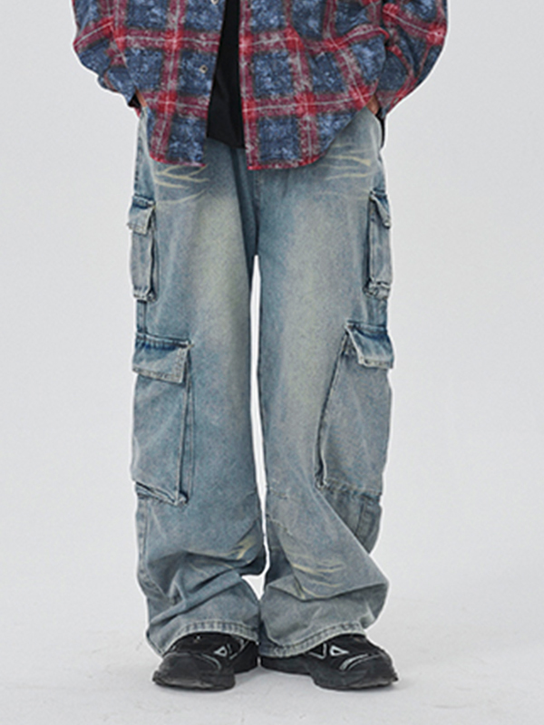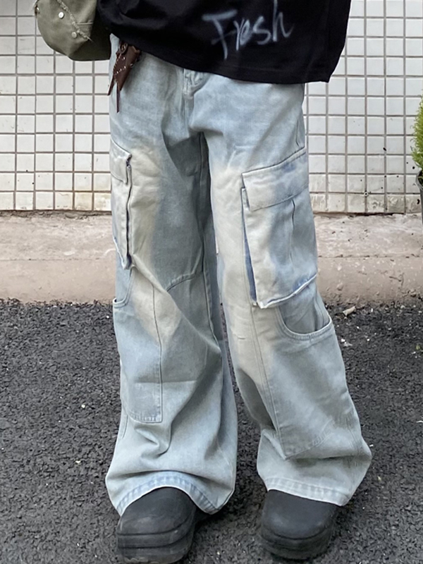 Verwaschene Herren-Cargojeans mit mehreren Taschen