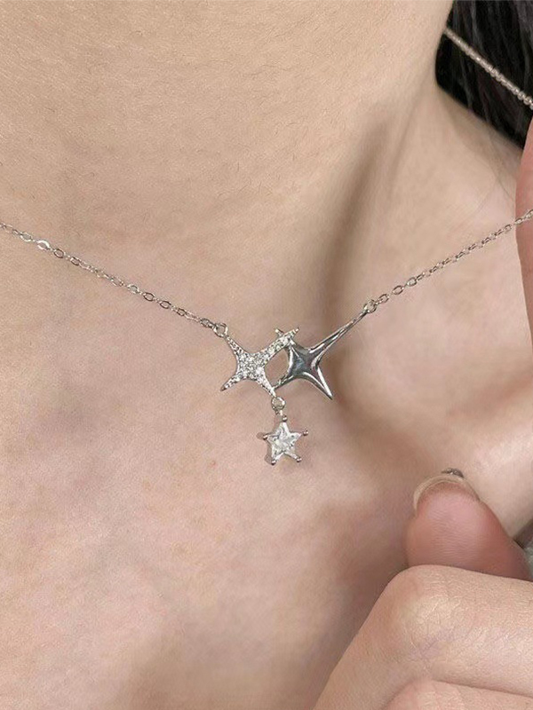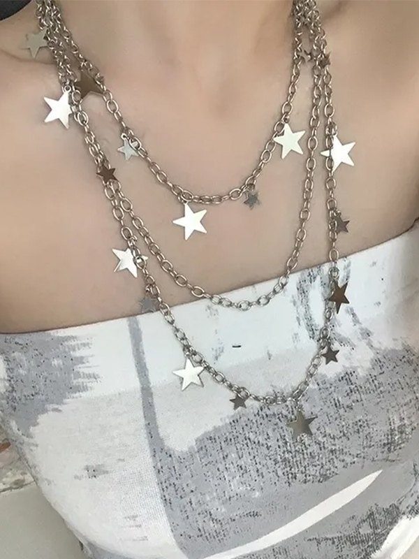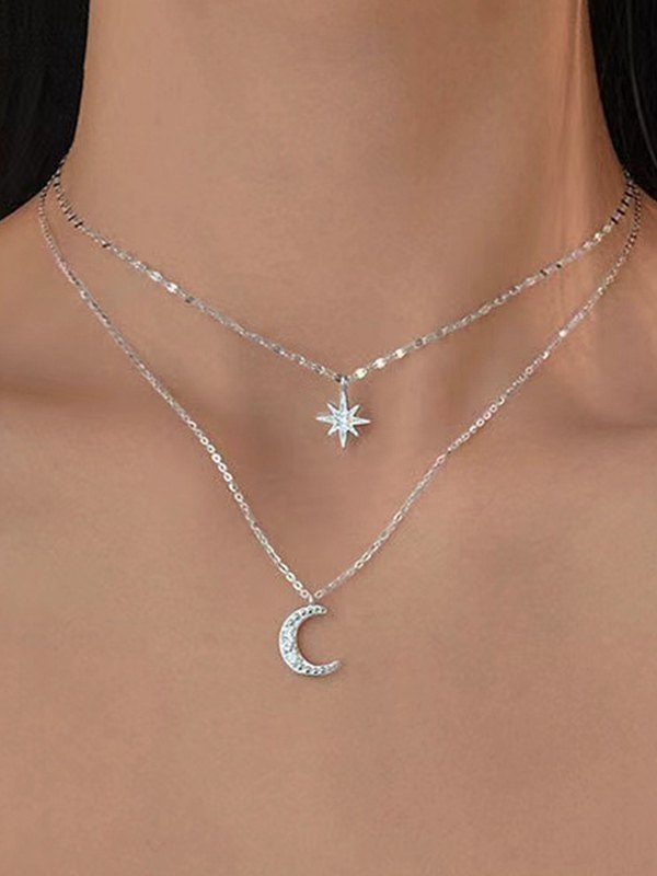 Doppellagige Halskette mit Halbmond-Stern-Anhänger