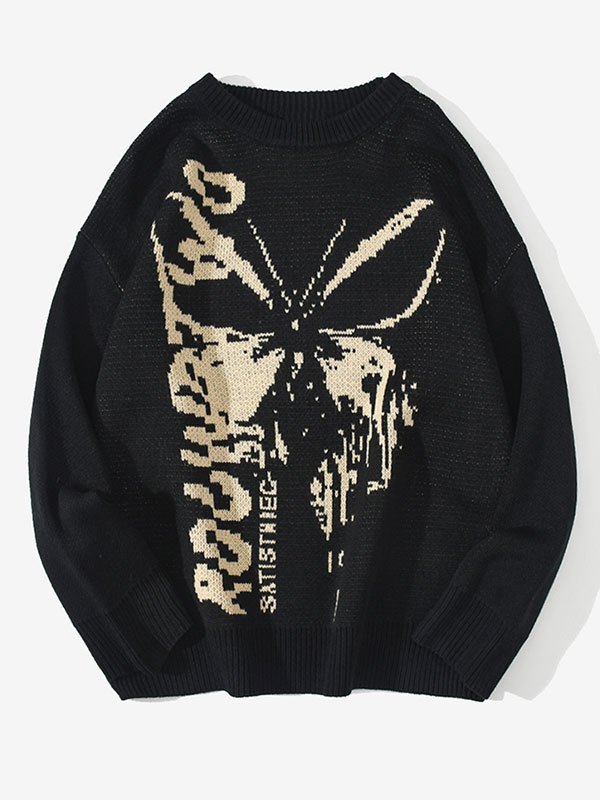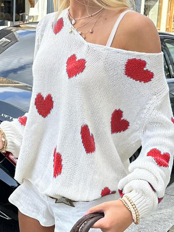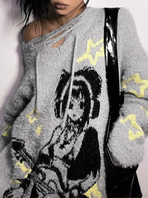 Lockerer Pullover mit V-Ausschnitt und Anime-Print