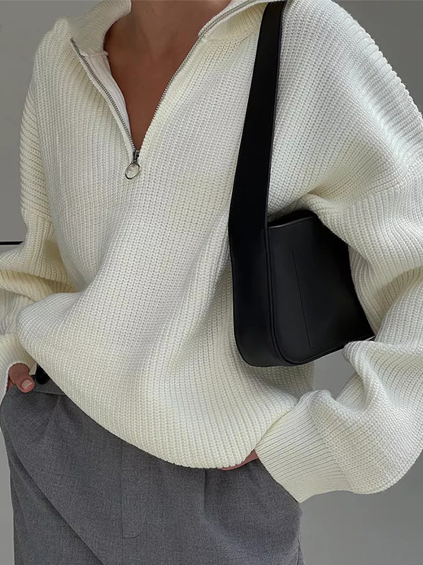 Einfarbiger, schmaler Strickpullover mit Stehkragen