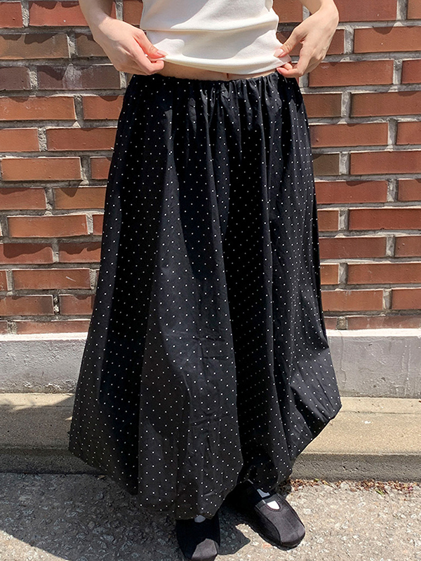 Süßes Mädchen im weißen gepunkteten Maxirock