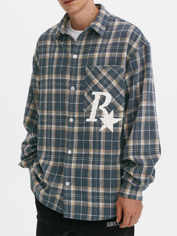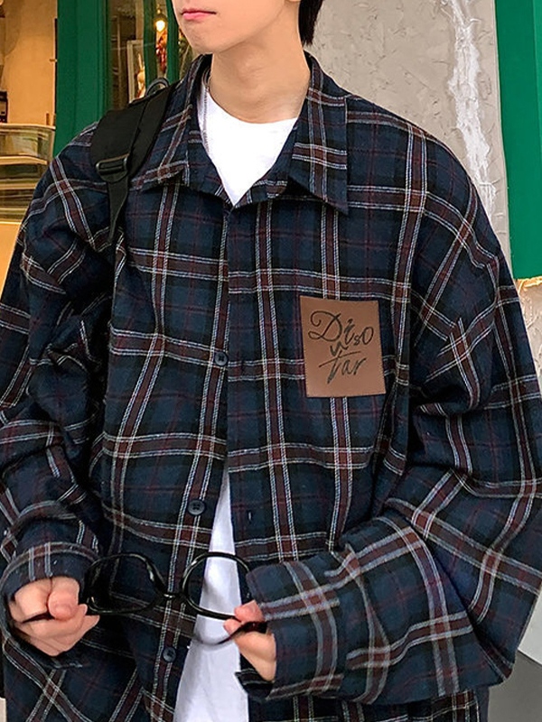 Kariertes Langarmhemd mit Knöpfen für Herren