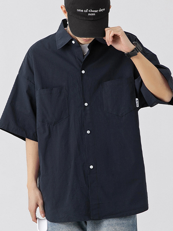 Lässige Kurzarm-Taschendekoration im japanischen Stil