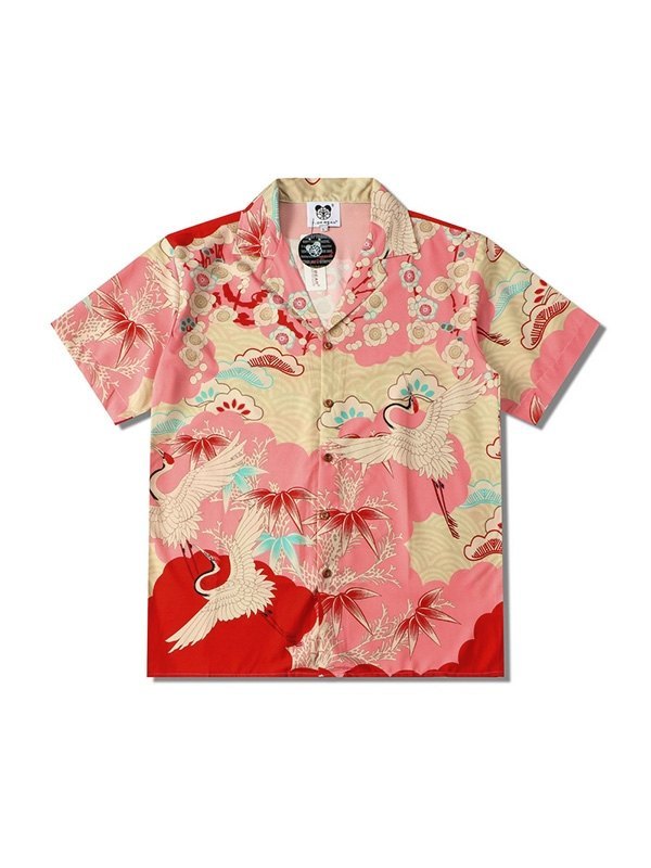 Kurzärmliges Button-Down-Hemd mit Kranich-Print für Herren