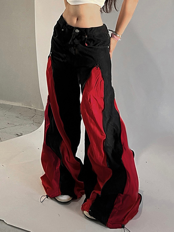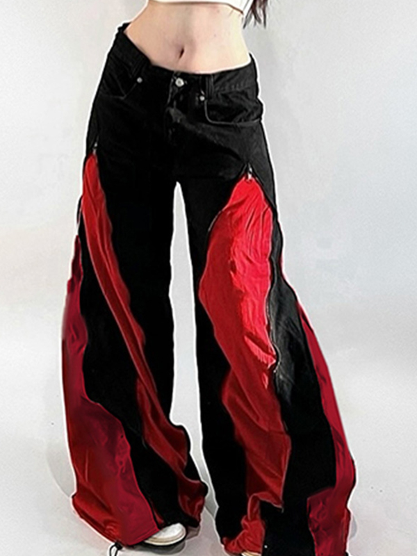 Boyfriendjeans mit Reißverschluss und Patchwork-Farbblockdesign Menge