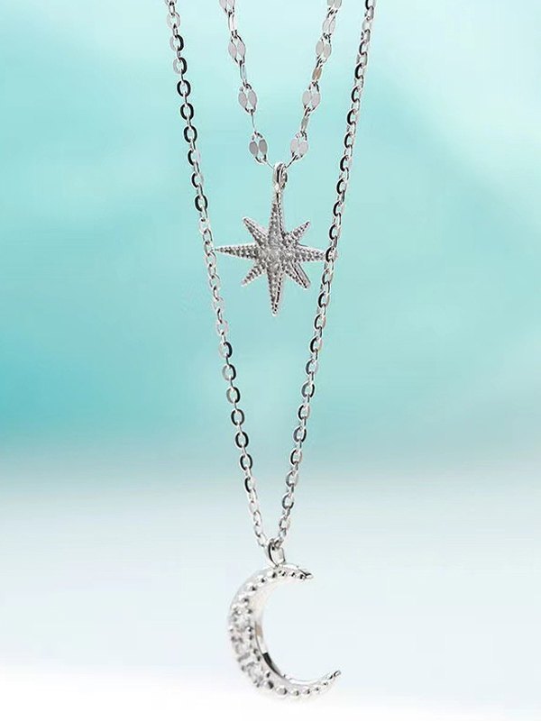 Doppellagige Halskette mit Halbmond-Stern-Anhänger Menge