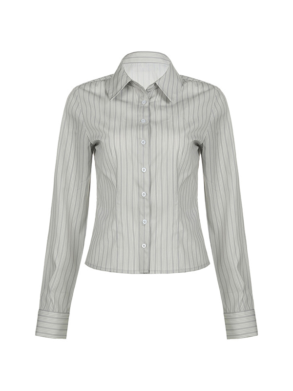 Einfache Streifen-Langarmhemden