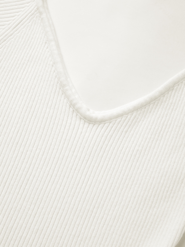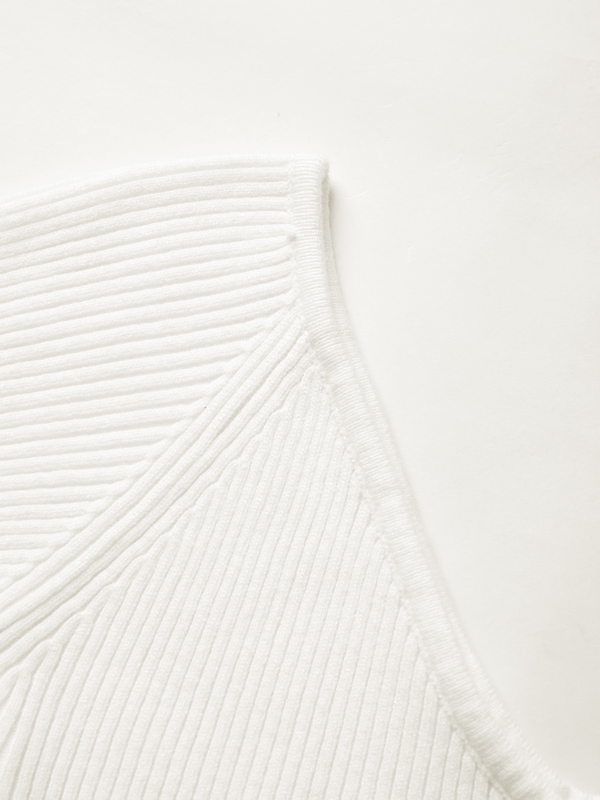 Einfarbiges, geripptes A-Linien-Strick-Minikleid mit V-Ausschnitt