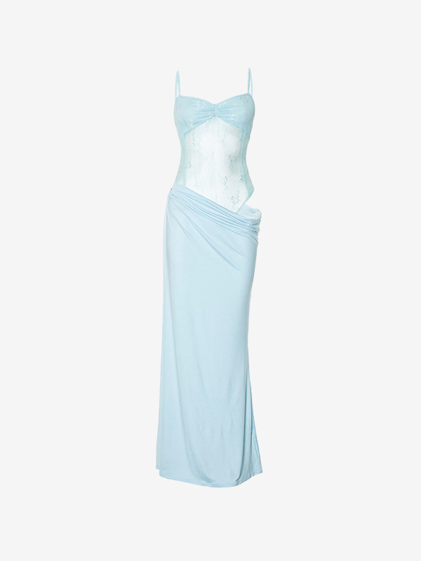 Einfarbiges Maxikleid mit Camisole-Spitze