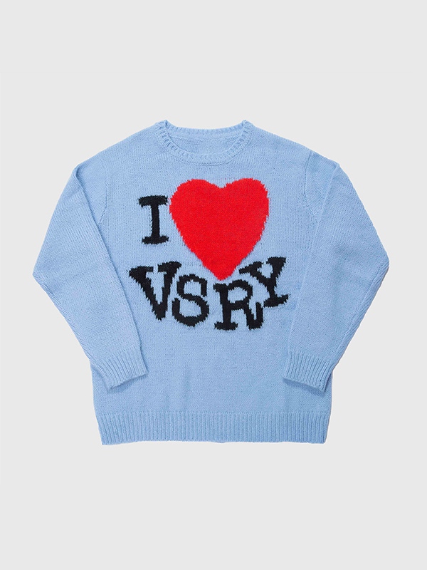 Herren-Strickpullover mit Rundhalsausschnitt und Jacquardmuster mit Buchstaben und Herzmuster