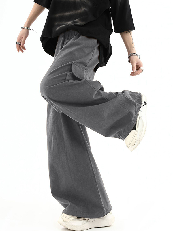 Herren Vintage Braune Cargohose mit großen Taschen und gebundenen Füßen