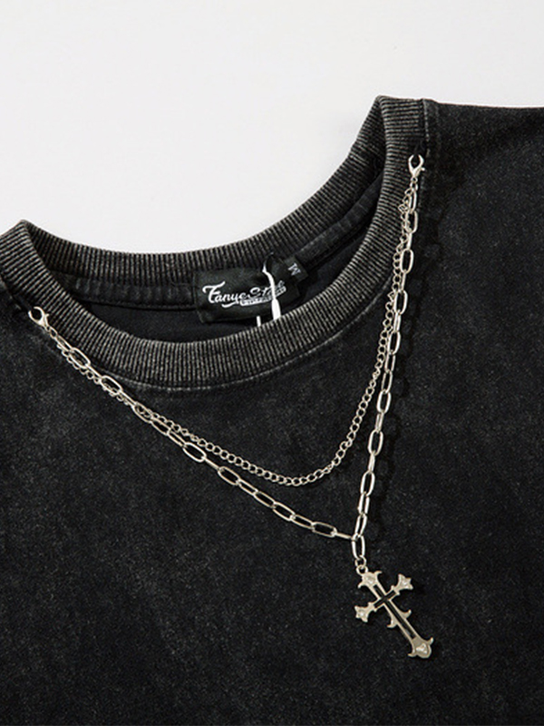 Herren-Weste mit Hip-Pop-Print, zerrissen und Halskette Menge