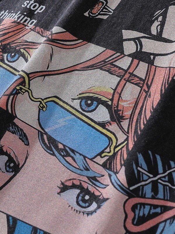 Kurzärmliges T-Shirt mit Anime-Grafik für Herren Menge