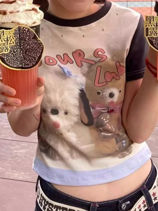 Kurzärmliges T-Shirt mit kontrastierendem Katzen-Print Menge
