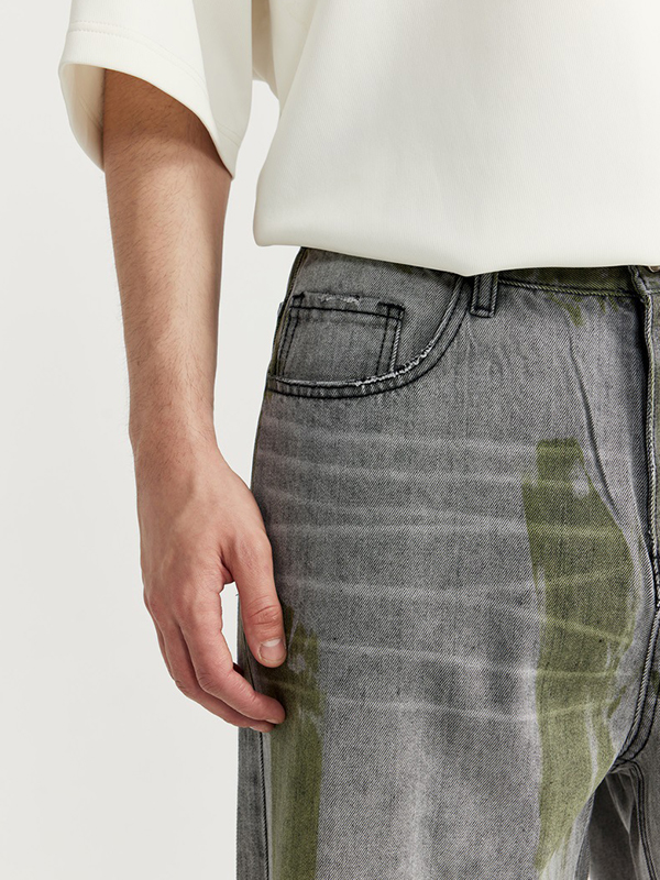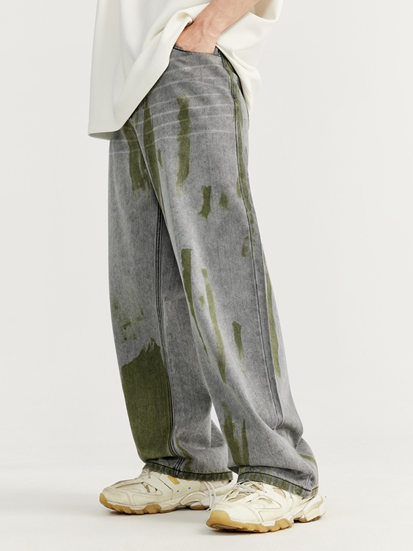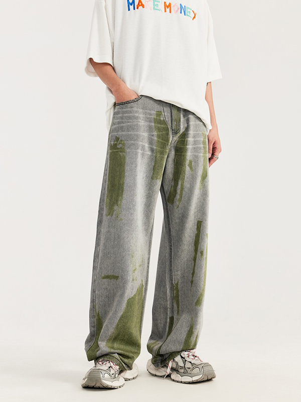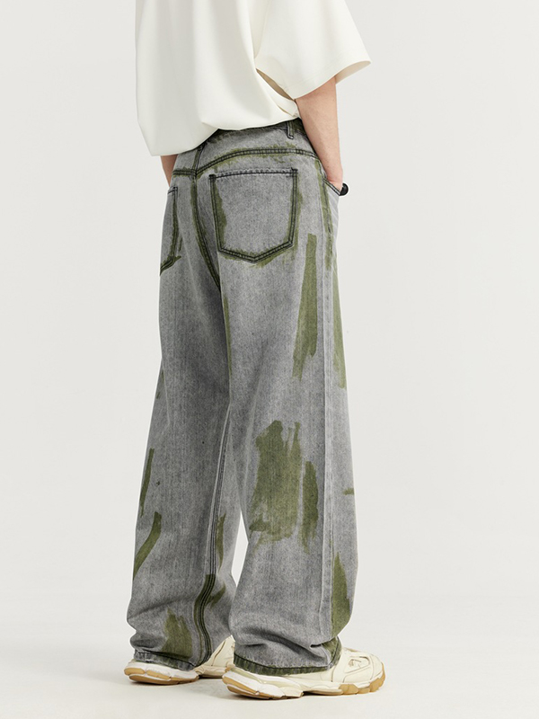 Lockere Jeans mit weitem Bein und handbemalten Kontrastfarben Menge