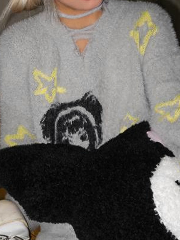 Lockerer Pullover mit V-Ausschnitt und Anime-Print