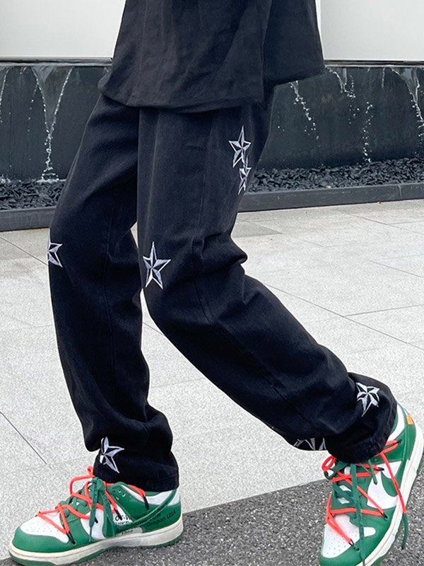 Lose Jeans mit besticktem Stern in Schwarz für Herren
