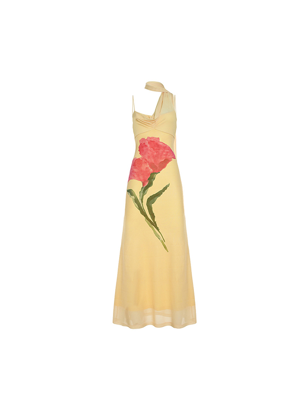 Maxikleid aus Netzstoff mit unregelmäßigem Blumenmuster