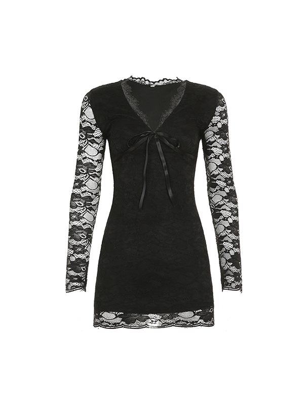 Minikleid mit V-Ausschnitt und Spitzenschleife