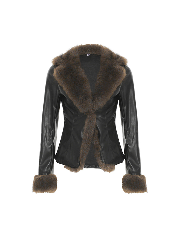 Patchwork-Lederjacke mit Pelzkragen im amerikanischen Stil Menge