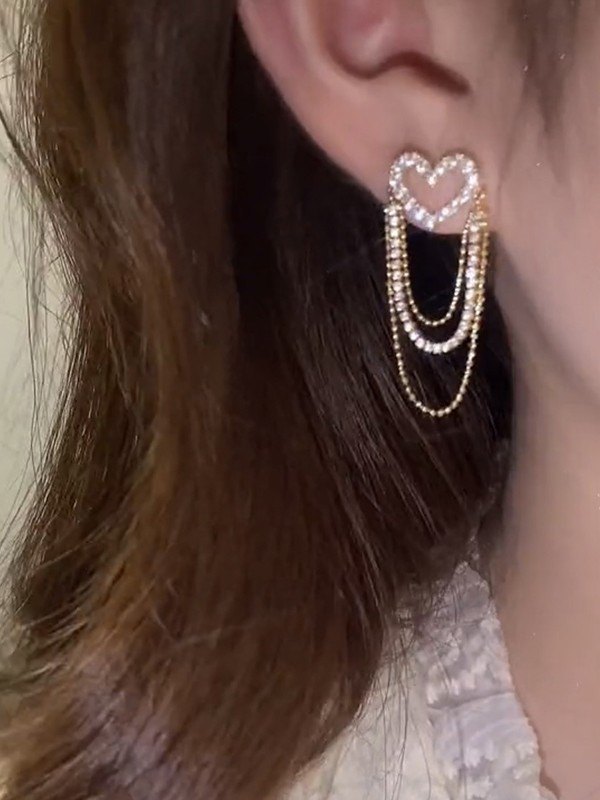 Quaste Kette Strass Herz Ohrring Menge