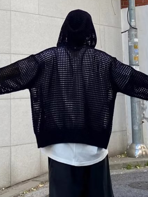 Übergroßer gestrickter Kapuzenpullover mit Cutout und Reißverschluss für Herren