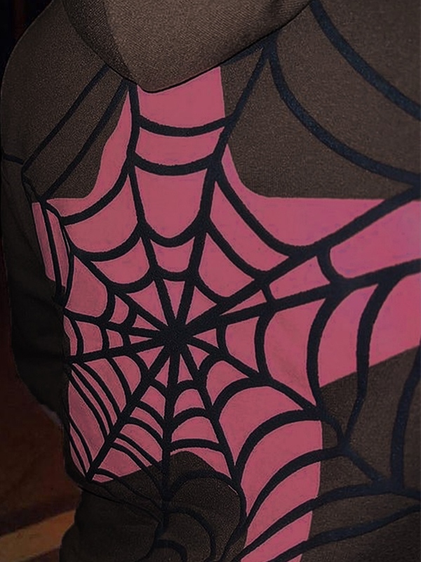 Übergroßer Kapuzenpullover mit kontrastierendem Spinnennetz-Print für Herren