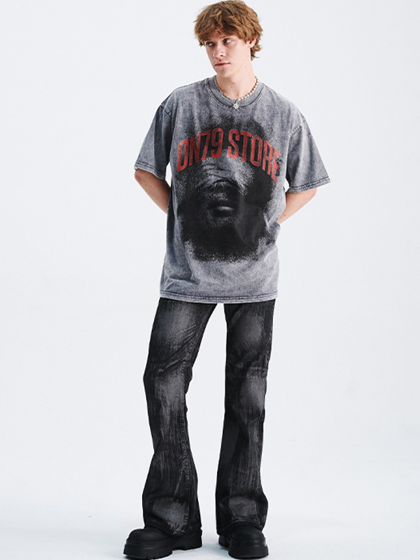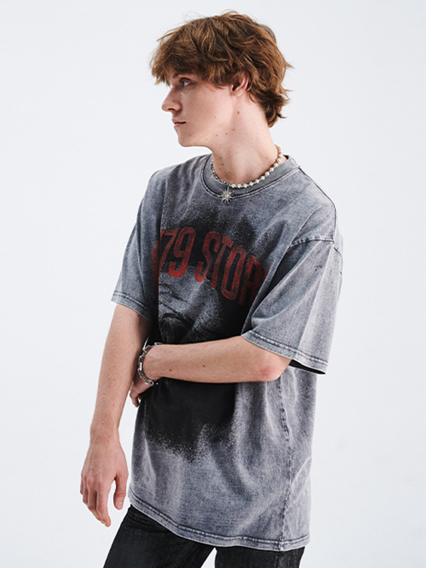 Übergroßes, kurzärmliges T-Shirt mit dunklem Print für Herren Menge