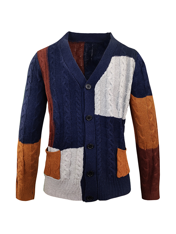 Unregelmäßiger Farbblock-Spleißpullover für Herren mit V-Ausschnitt
