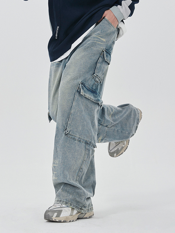 Verwaschene Herren-Cargojeans mit mehreren Taschen
