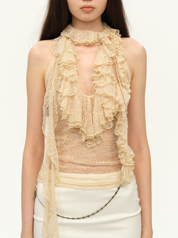 Zweifarbige Neckholder-Weste aus Spitze Menge